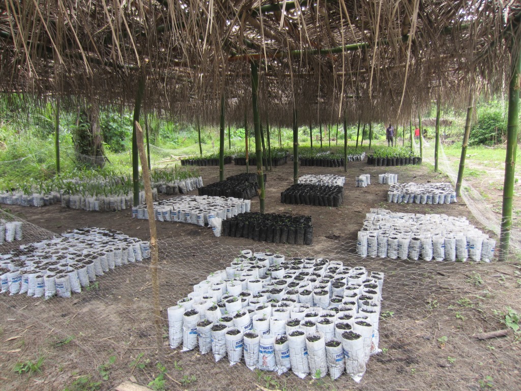 They are purchasing small seedlings for trees that are more difficult to start, like oil palms, coconuts and teak. Others they are starting themselves from seeds, seeds you literally spit out when eating an orange or grapefruit, or pits collected from avocado and mangoes. They’re planted in deep polythene bags with rich swamp bottom compost, and they quickly germinate and thrive in the tropical heat and humidity.
