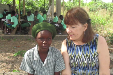 13-year-old Alima, left, student at Bumpeh Academy with Arlene Golembiewski, SFSL