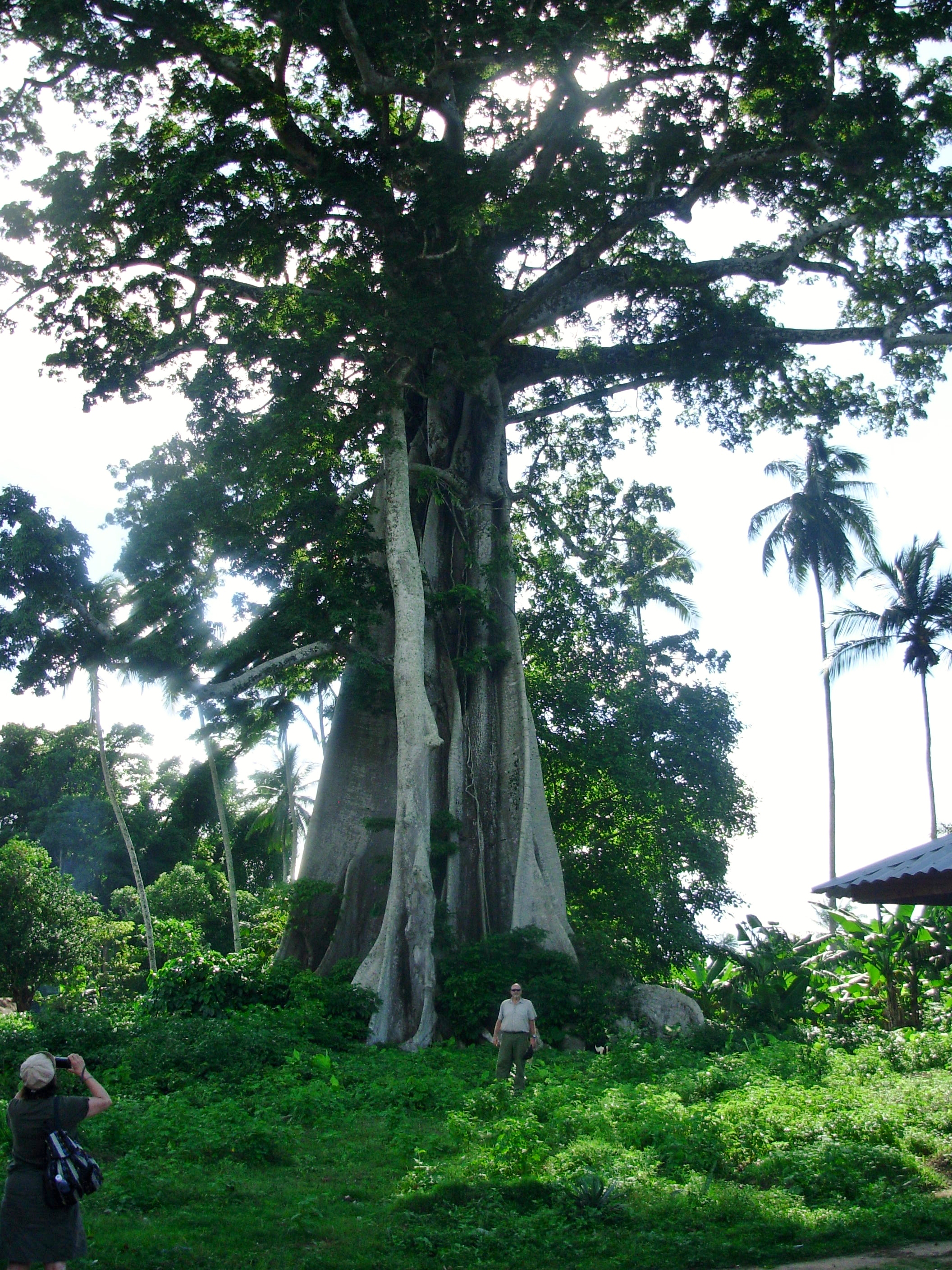 Giant cotton tree dwarfs six foot man.