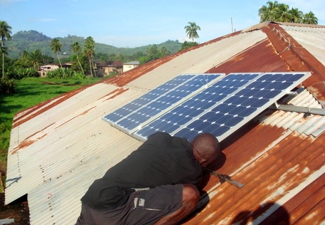 solar panel Published May 29, 2013 at 456 × 316 Example of Energy for Opportunity, a Sierra Leone Nonprofit for solar technology installing solar panels on roof.