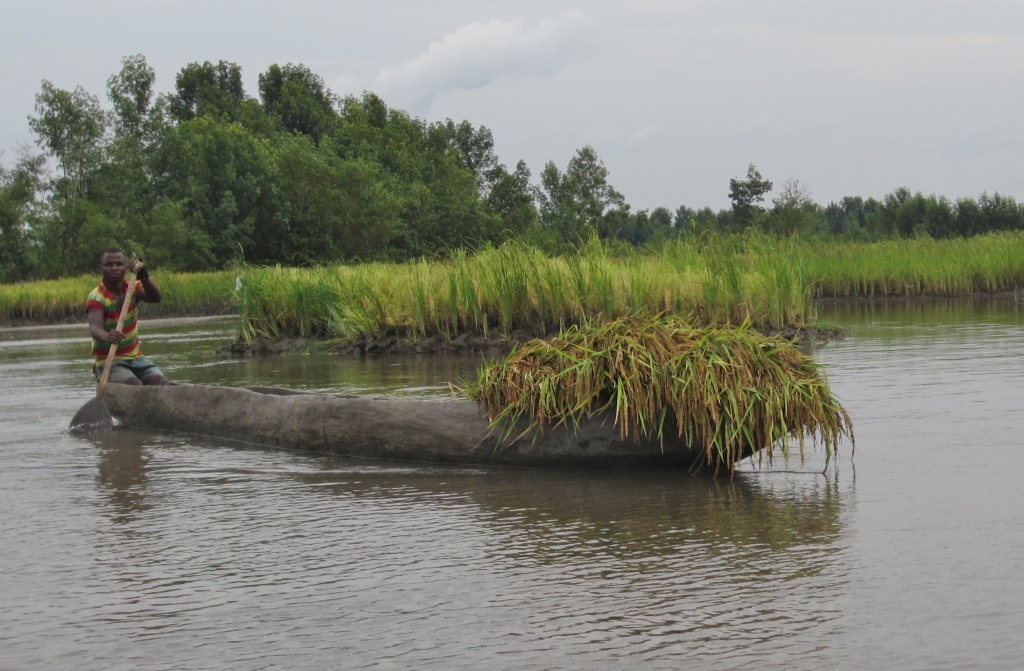 Where the dots really connect for me is when I am now in the small rice growing villages of Bumpeh Chiefdom, places where much of daily life hasn’t changed that much in two hundred years. Like this picture and the one above I took in November, where rice that’s planted and harvested all by hand is being brought in with hand made dugout canoes to be threshed by hand.
