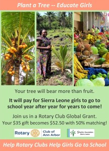 We must thank the Rotary Club of Ann Arbor for helping Chief Caulker realize his vision for the orchards. They took the lead in sponsoring two Rotary global grants of two years each to start the orchards. They organized 19 Rotary clubs in the US, Canada and India who contributed to the grants.